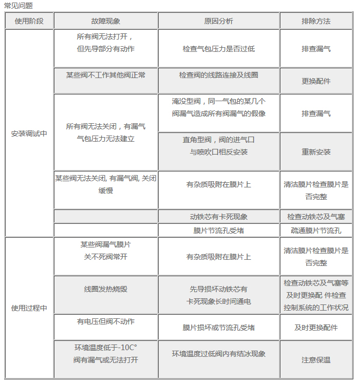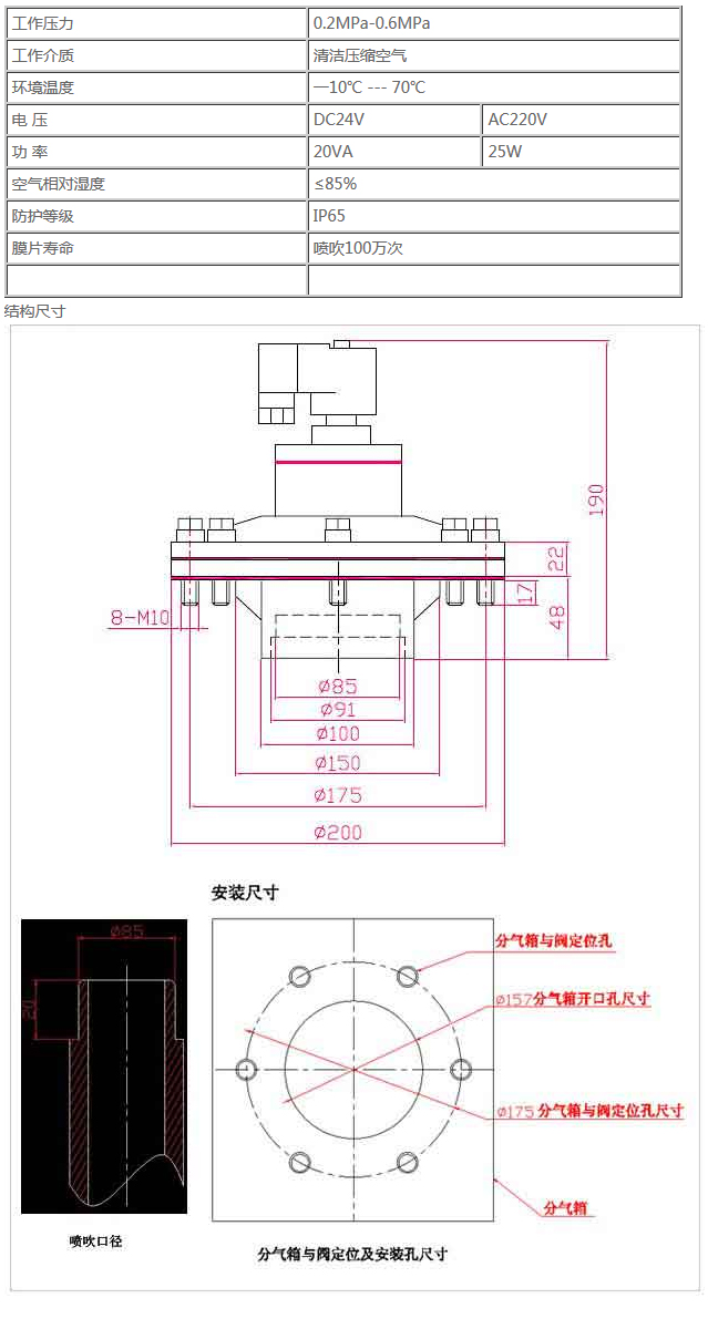 6. 該閥與氣包及噴吹連接管的密封件適用溫度為-10℃~70℃。如需高溫密封件,請(qǐng)訂購(gòu)時(shí)另行注明。